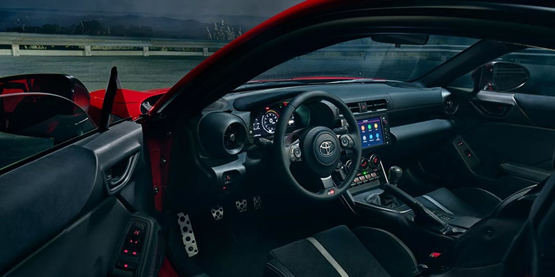 This coupe comes with Toyota's GR86 Audio infotainment system with an 8-inch touch screen. Apple CarPlay and Android Auto integration come standard for both trims, as does Bluetooth and two USB charging ports. Listen to your audio through the six-speaker sound system found on the base, the eight-speaker system that comes with the Premium trim, or opt for the available 10-speaker system for either trim.