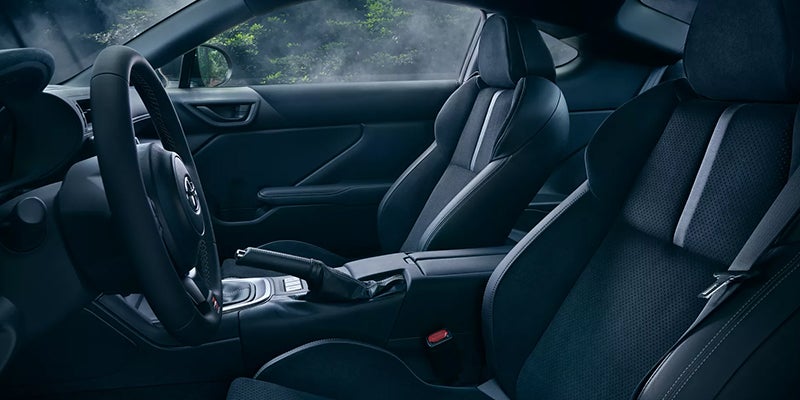 You can fit up to four people in the two rows of seats inside of the GR86. Cloth-trimmed seats come on the base trim and the Premium gets leather-trimmed seats. The upper trim also comes with two-stage heated front seats with leather bolsters and Ultrasuede inserts. Both trims have a heated leather-wrapped steering wheel, shift knob, and parking brake lever. Adding to the sports car feel of the 2022 GR86, the Premium trim comes with shiny aluminum pedals.
