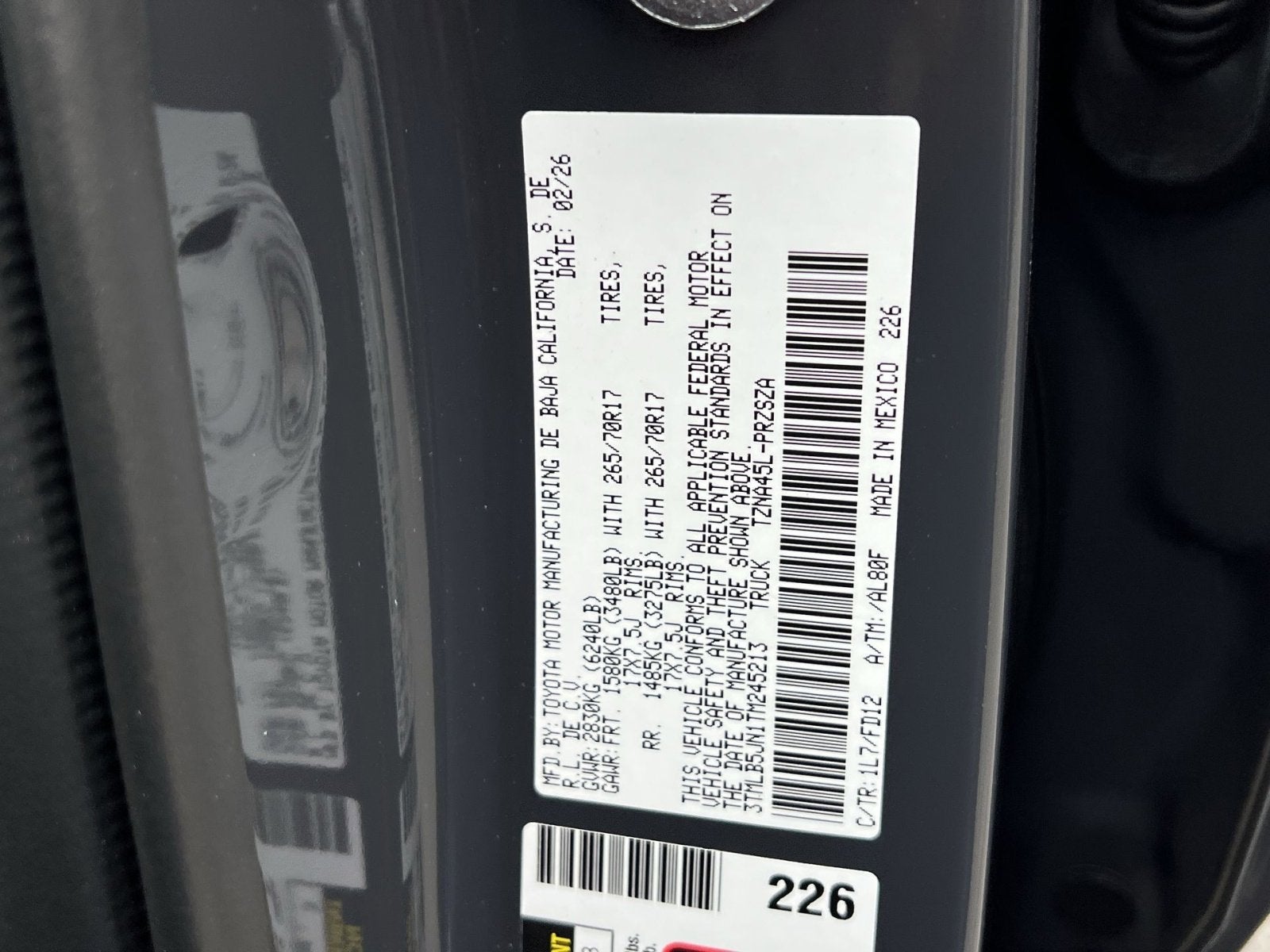 - Front Tire Size: P265/70TR17