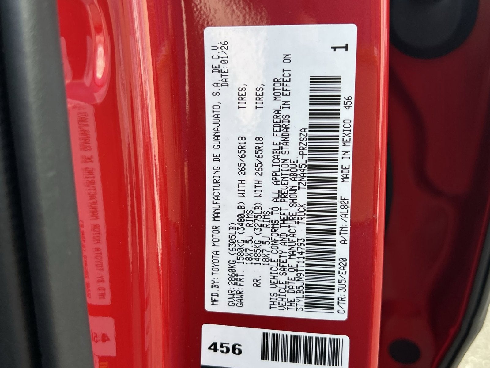 - Vehicle Name: Toyota Tacoma 4WD